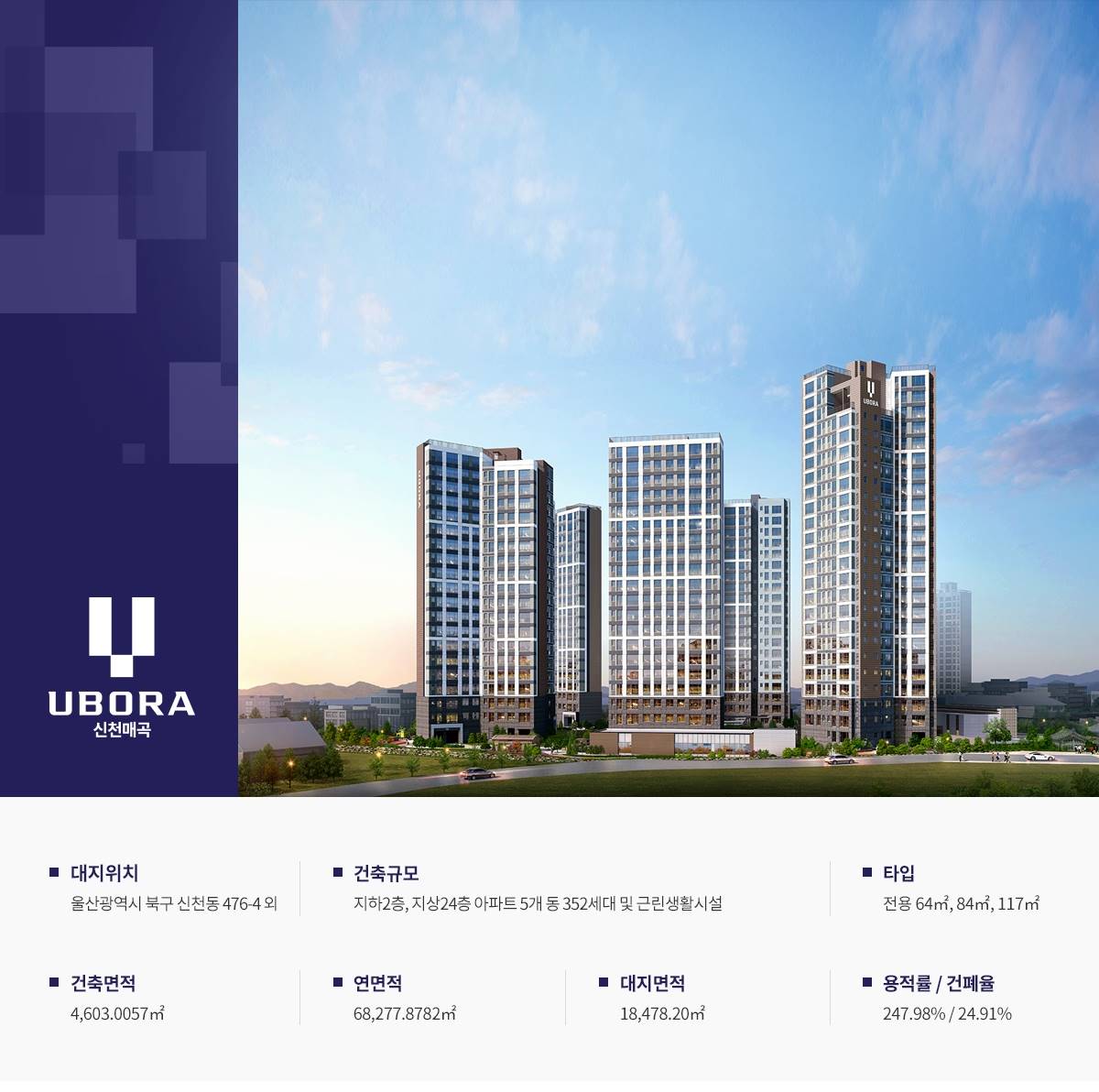 아파트 1060세대, 오피스텔 165실 등 총 1,225세대로 조성되어 신천매곡지구의 주거 가치를 선도하는 대표 단지로 자리매김합니다.